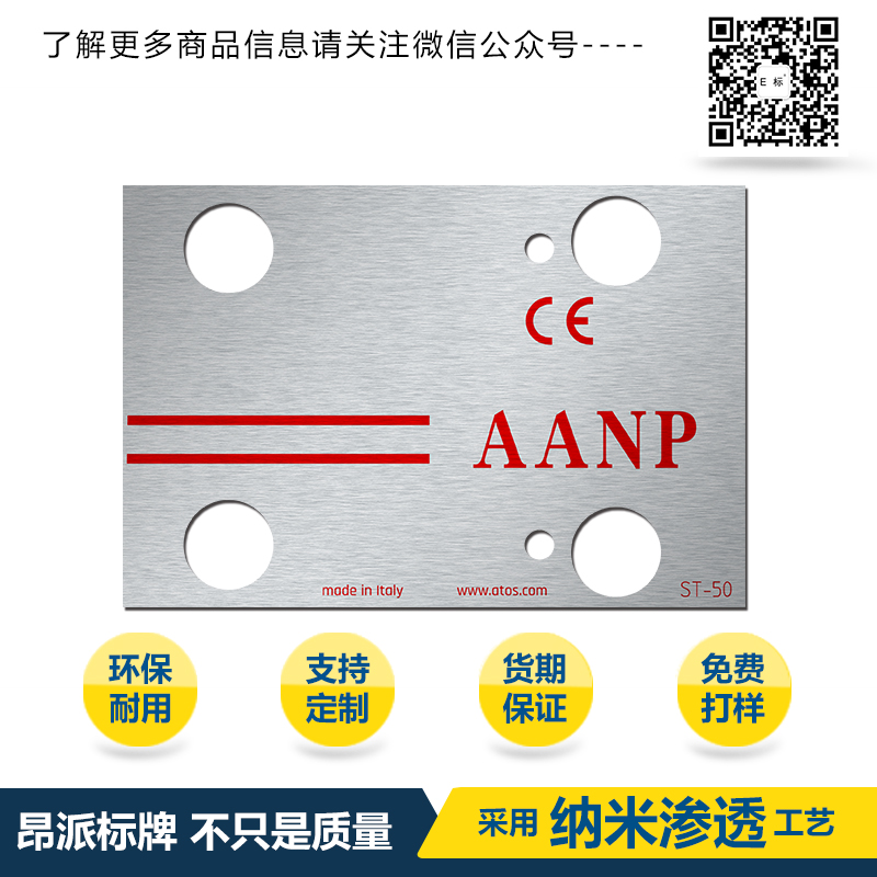 的專利產品,出口德國、日本、韓國、美國,陽極氧化銘牌耐油、耐腐蝕、耐磨,用不含硬質的填料橡皮擦拭300次后應清晰可辨,