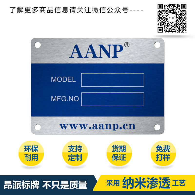 上海昂派標牌利用最新專利產品:防偽鋁合金銘牌。設備銘牌在紫外燈照射瞬間顯防偽標識,防偽標識按照
