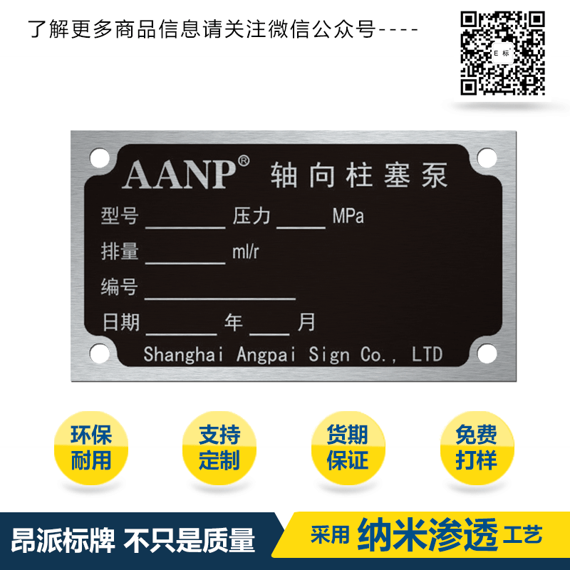 柱塞泵防偽銘牌 時間:2025-05-06 12:54:48 分類:防偽銘牌 瀏覽:次 標牌、銘牌、鋁牌的特色:此種工藝的特性,能使鋁制產品表面產生堅硬的保護層,此保護層的特點是:耐候性低、抗惡劣天氣,不受臭氧、空氣污染、酸雨侵襲;耐紫外線、抗紫外線、抗粉化;耐化學品性、抗酸堿侵蝕;耐腐蝕性,氧化潮氣鹽份滲透率低;防霉菌污損耐濕性優,不會變色、褪色、爆裂、并能長期保持光潔如新,易于保養清洗。 分享收藏: 上一個: 設備防偽鋁合金銘牌 下一個: 電磁閥防偽銘牌 相關案例