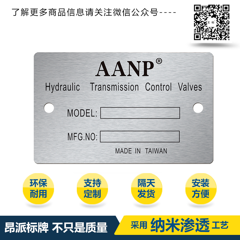 定制銘牌 時間:2018-09-07 16:35:52 分類:金屬銘牌 瀏覽:次 標牌、銘牌、鋁牌的品質: 本產品具有耐酸堿、耐熱震、耐高溫、抗沖擊、還具有很強的耐曬、耐磨擦、耐高溫、耐腐蝕、耐有機溶劑等特性,抗紫外線、抗粉化、不受臭氧、空氣污染、在室外陽光照射不易褪色,廣泛應用于化工、電力和電信等腐蝕性強或須把標志牌懸掛于室外的企業,歡迎新老客戶拿圖拿樣來定做.不分量大小都可以定做價格合理.質量保證交貨準時。 分享收藏: 上一個: 定制銘牌 下一個: 合格證 相關產品 陽極氧化指示小標牌 自動化設備鋁標牌 汽車零配件鋁標牌 陽極氧化指示標牌 電磁閥萬用鋁合金防偽標牌 電磁閥溢流閥標牌